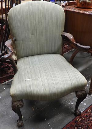 carved walnut upholstered open armchair