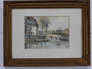two watercolors, andreau, "coastal scene"7 "paris street scene