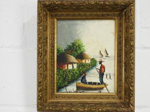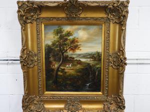 euro school o/c, 24" x 20", "hunting scene"