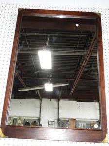 mahogany finish brass accented wall mirror.