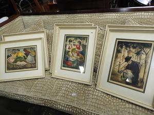 six framed colour etchings.
