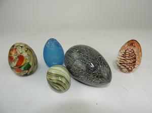5 italian art glass eggs