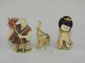 lot: cork screw, carved bone, enamel cup, eastern metalwork box, etc.