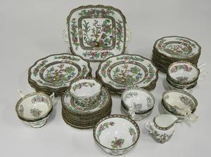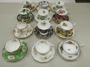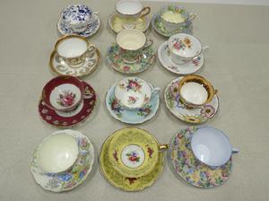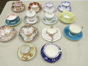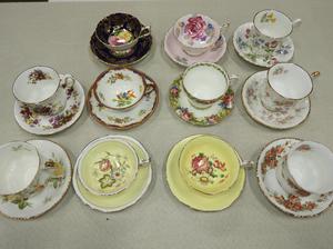Jewelry including gold and gemstone, silver and costume. Sterling silve and silver plate serving items. Many porcelain dinnerware sets including Aynsley, Royal Crown Derby and Minton. English china figurines and European animal groups. Many, many, many lots of tea cups! Chinese and Japanese items, lighting and other antiques and collectables.