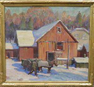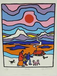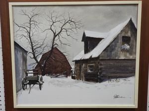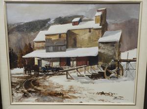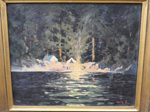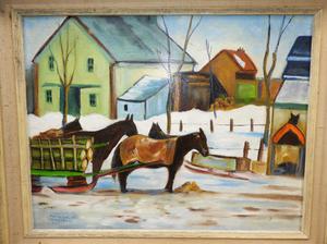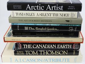 Canadian works featuring a large canvas by Frederick Loveroff and including Franklin Brownell, W.F. Schilbach, Tony Rice, Ted Harrison, Andre Bieler, Toller Cranston, Patrick Hickman, Dorothy Oxborough, Hilton Hassel and others. Canadian art reference books related to Lawren Harris, Franz Johnston, Ted Harrison, Andre Bieler, Tom Thomson and many others.