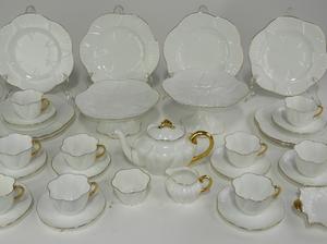 Costume jewelry, silver and gold jewelry, sterling silver including a Georgian footed salt seller, good quality silver plate, many porcelain dinnerware sets, flow blue including some rare pieces, Royal Doulton figurines, tea cups and saucers including Aynsley, Paragon and Royal Albert, Royal Crown Derby imari pattern china, Inuit carvings, over 350 lots of Antiques and Collectables.