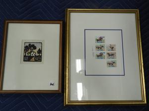 rebecca stone murray watercolor, with a framed set of canadian stamps