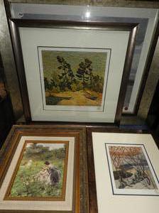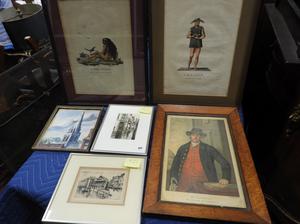 lot of framed prints, colored drawings