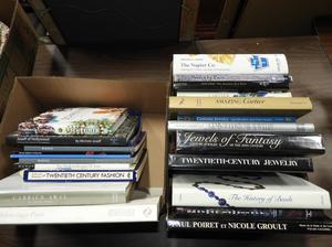 2 boxes of books on fashion, including cartier, beads, jewelery