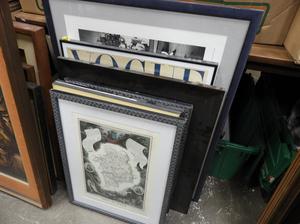 lot of framed prints including fashion prints