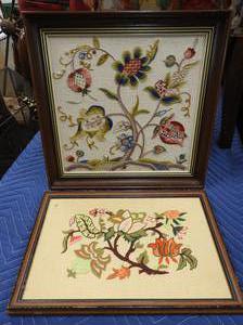 two framed indian stich floral studies