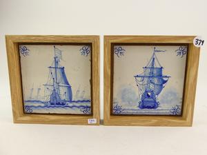 pair of framed dutch 19th century tiles