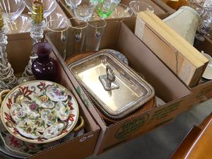 Large estate auction including jewelry, silver, porcelain, crystal, silver plate, furniture, antiques and collectables