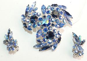 sherman brooch, with keyes rhinestone earrings, 1950s