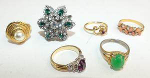 ethnic silver pendant, 2 earrings, 2 collar clips with five assorted bead and crystal necklaces