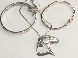 three pieces sterling silver jewelry, weighing approx 35 grams