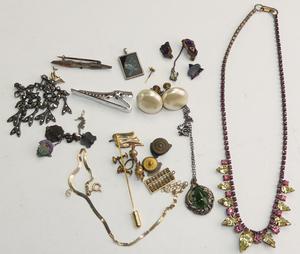 lot of vintage costume jewelery, including gold filled earring