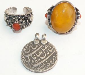 middle eastern amber coral rings and pendant