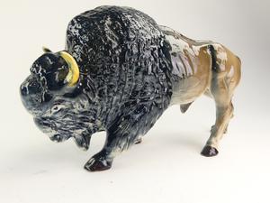 melba ware english porcelain buffalo figure, 8 1/2" x 14" x 5"