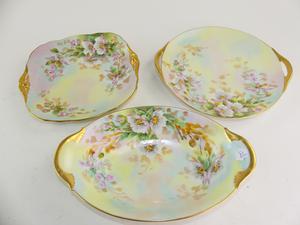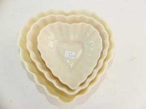 belleek porcelain graduated 3 heart shaped bowls, 6 1/2" and smaller