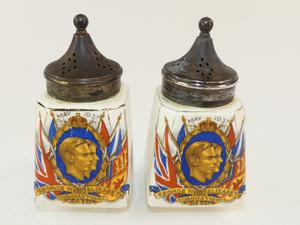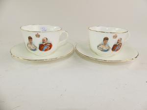 pair of english flow blue royal commemorative plates - edward vii & alexandria