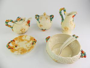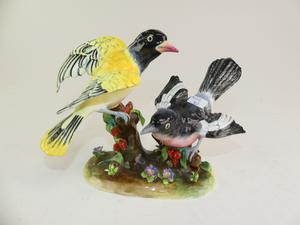 crown staffirdshire j.t. jones porcelain bird group, 7" x 8"