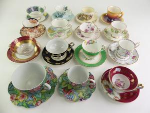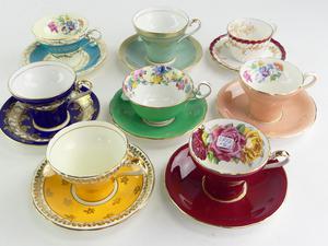 set of paragon "holyrood" pattern trio tea cups and saucers
