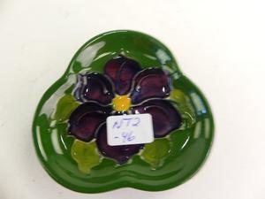 moorcroft art pottery clover-shaped dish, 2 1/2"