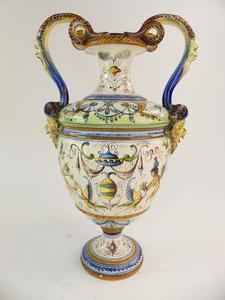 italian renaissance revival majolica vase, late 19th century, ht. 14" - crack in handle