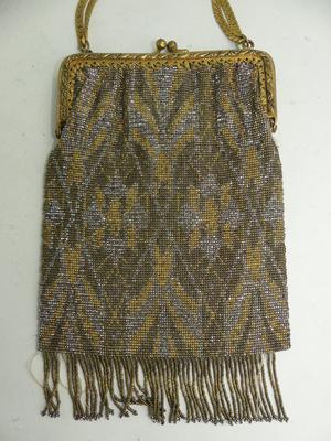 antique french cut steel evening purse, 6 1/2" x 5". with a 2" fringe, replaced chain