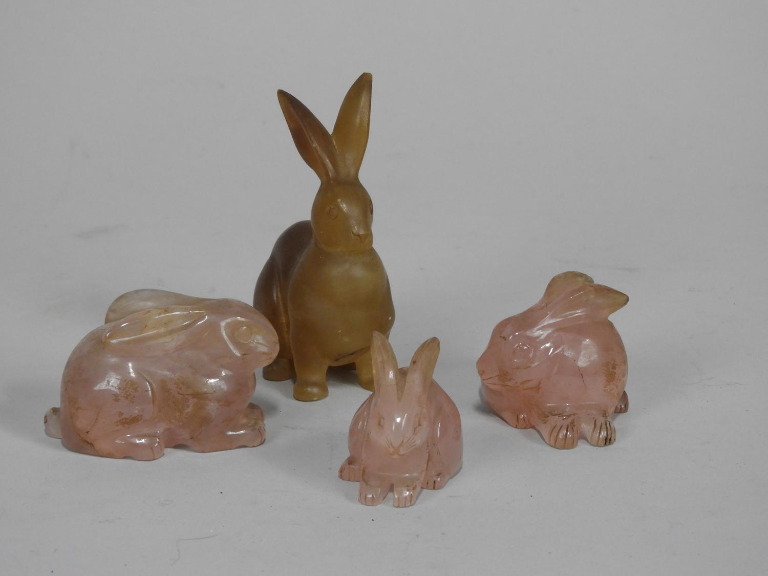 4 quartz carved bunny figurines