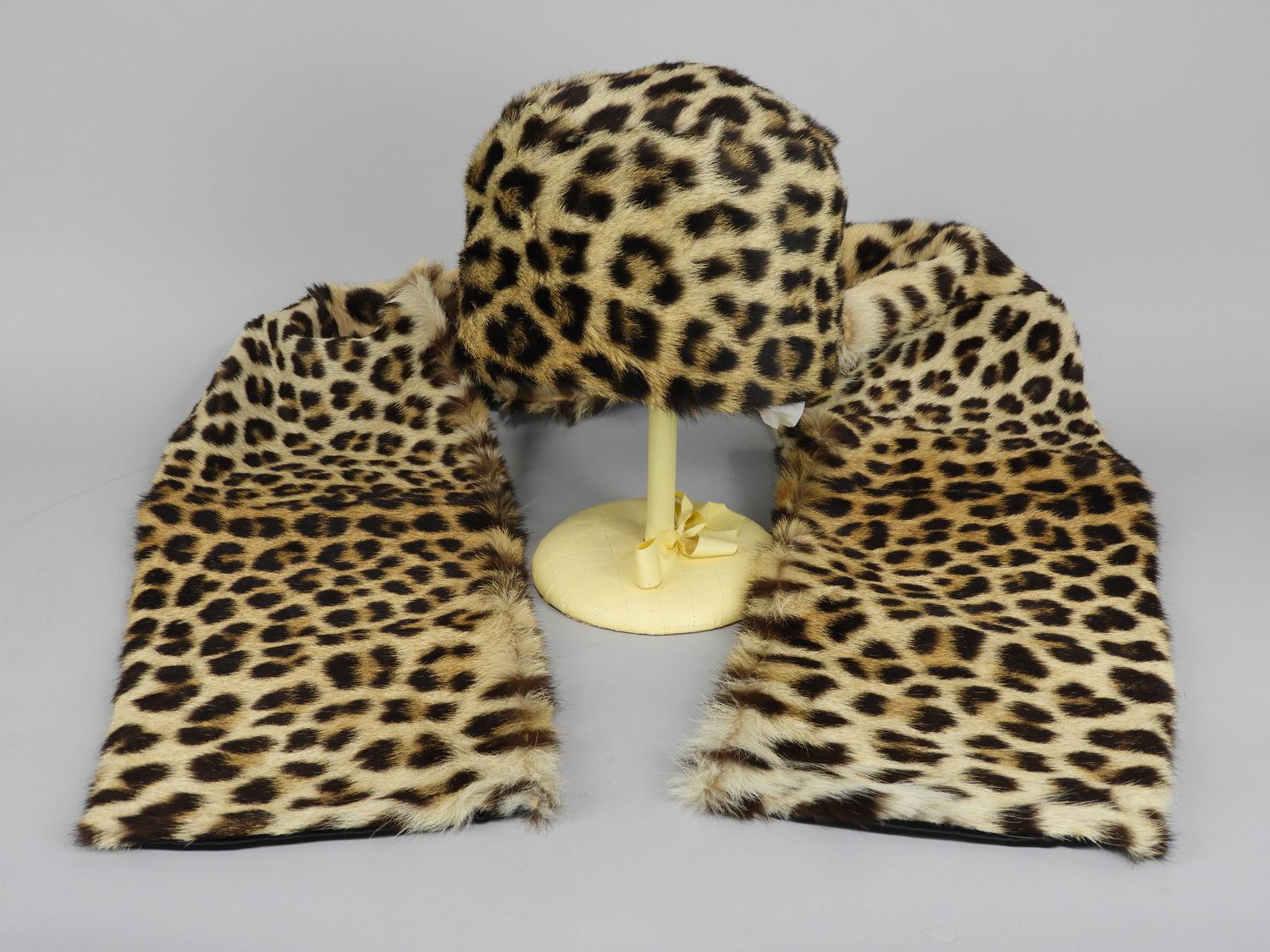 vintage leopard scarf and matching hat.