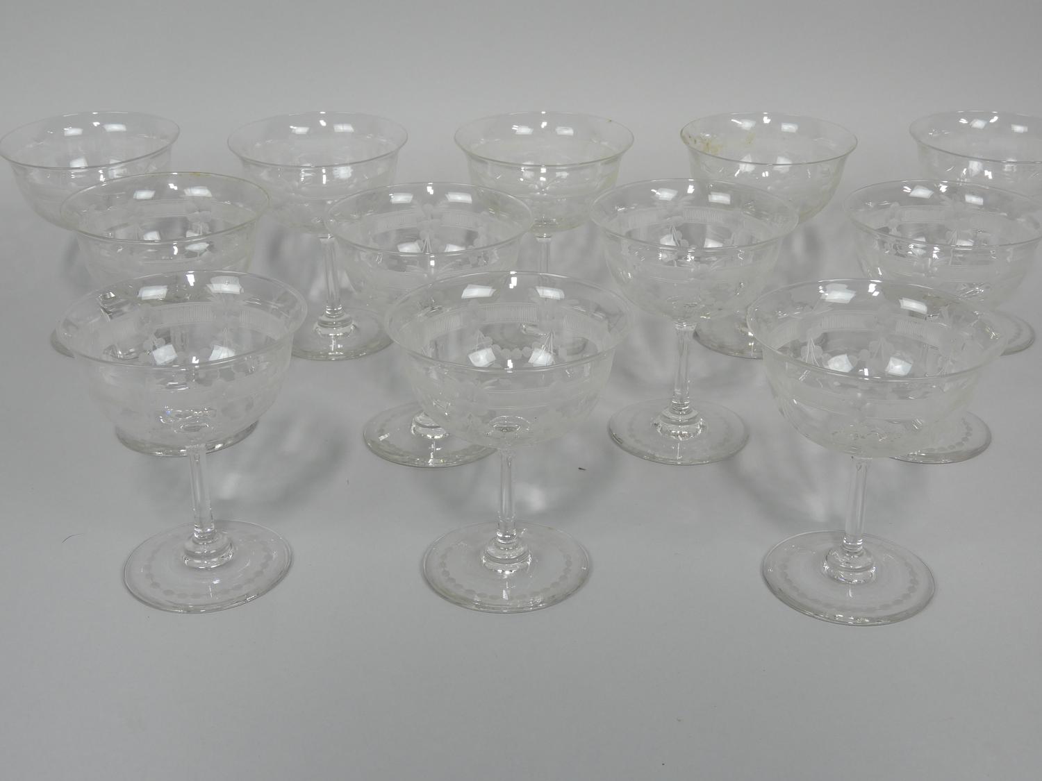 set of 12 floral garland etched glass stemware