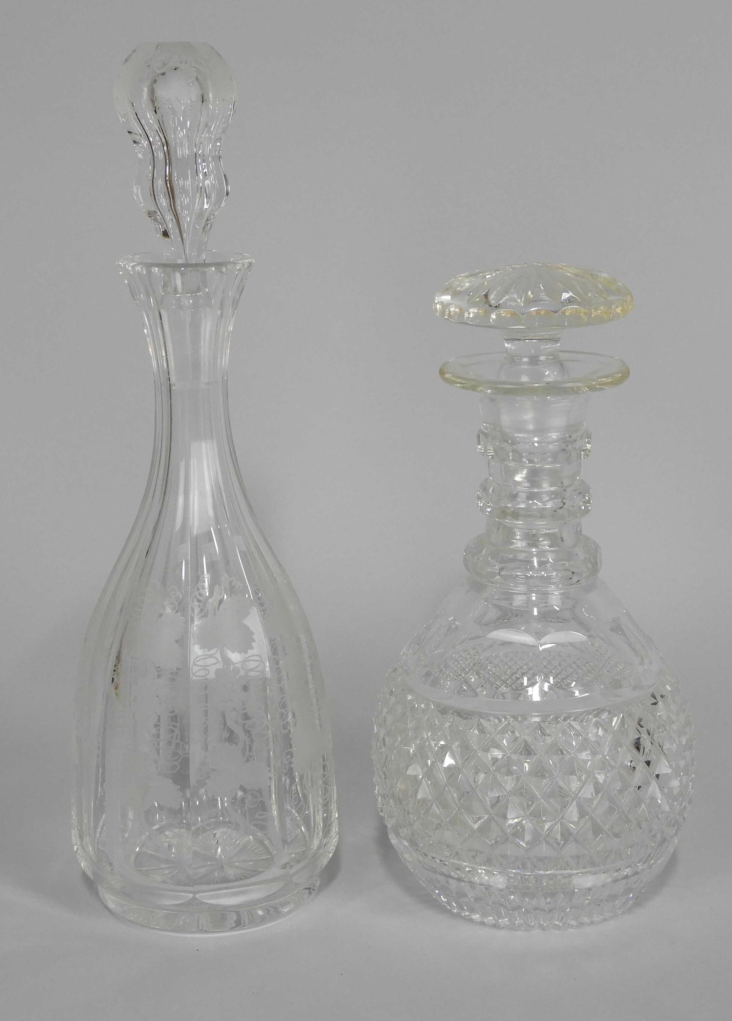two crystal decanters,