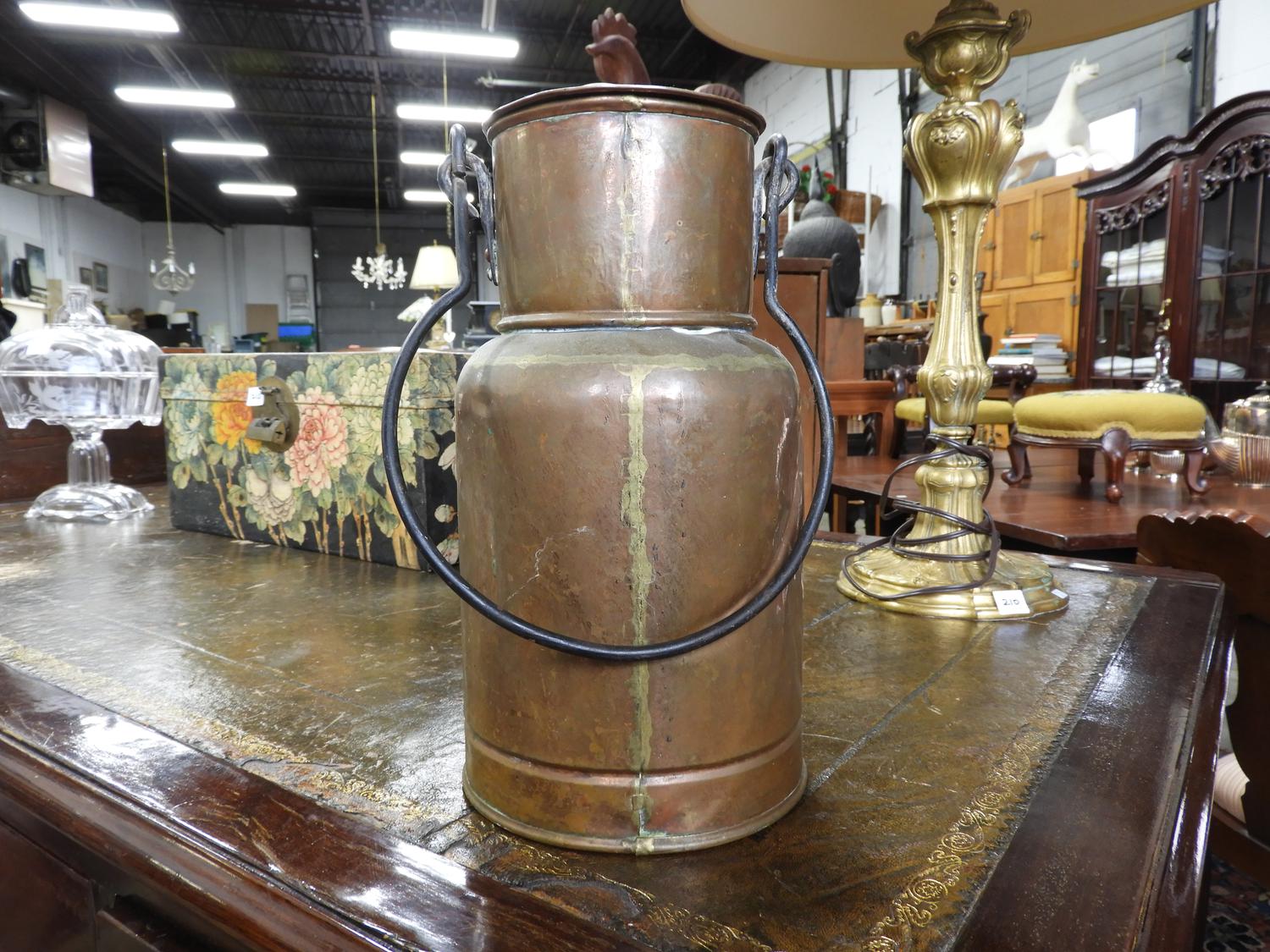 copper canister and lid with iron bail handle