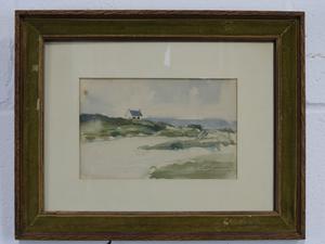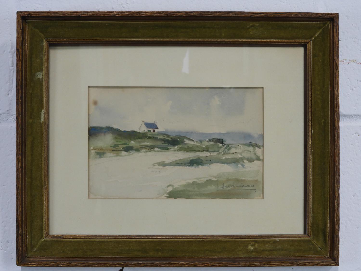 two watercolors, andreau, "coastal scene"7 "paris street scene
