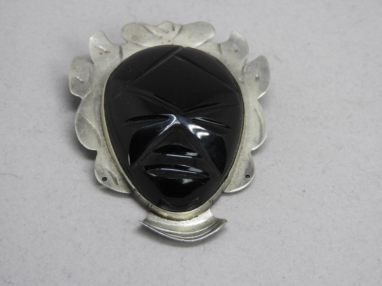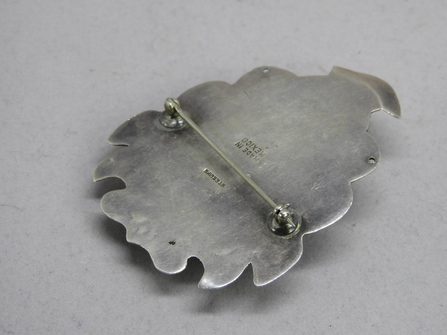 vintage mexican silver and onyx brooch