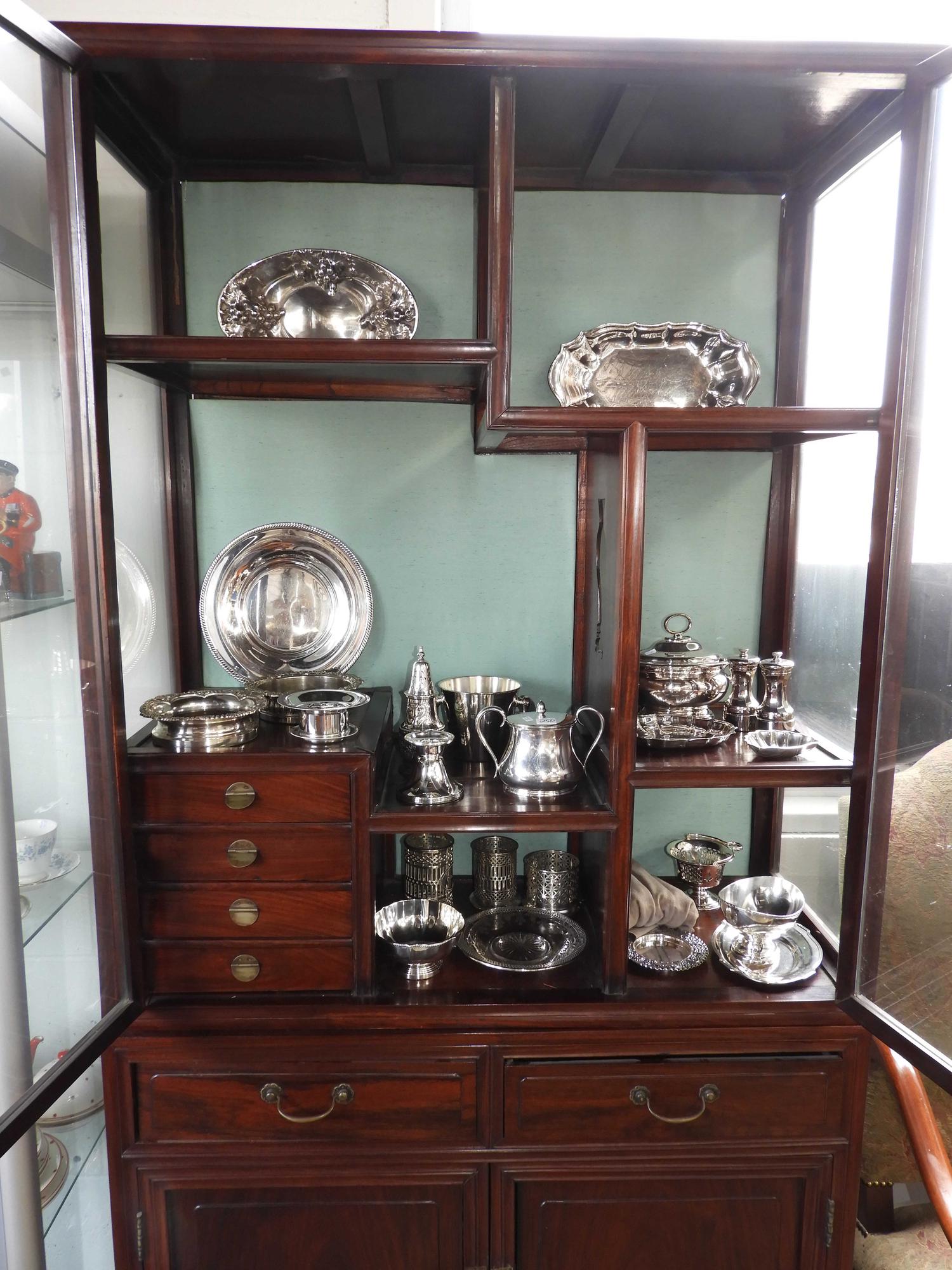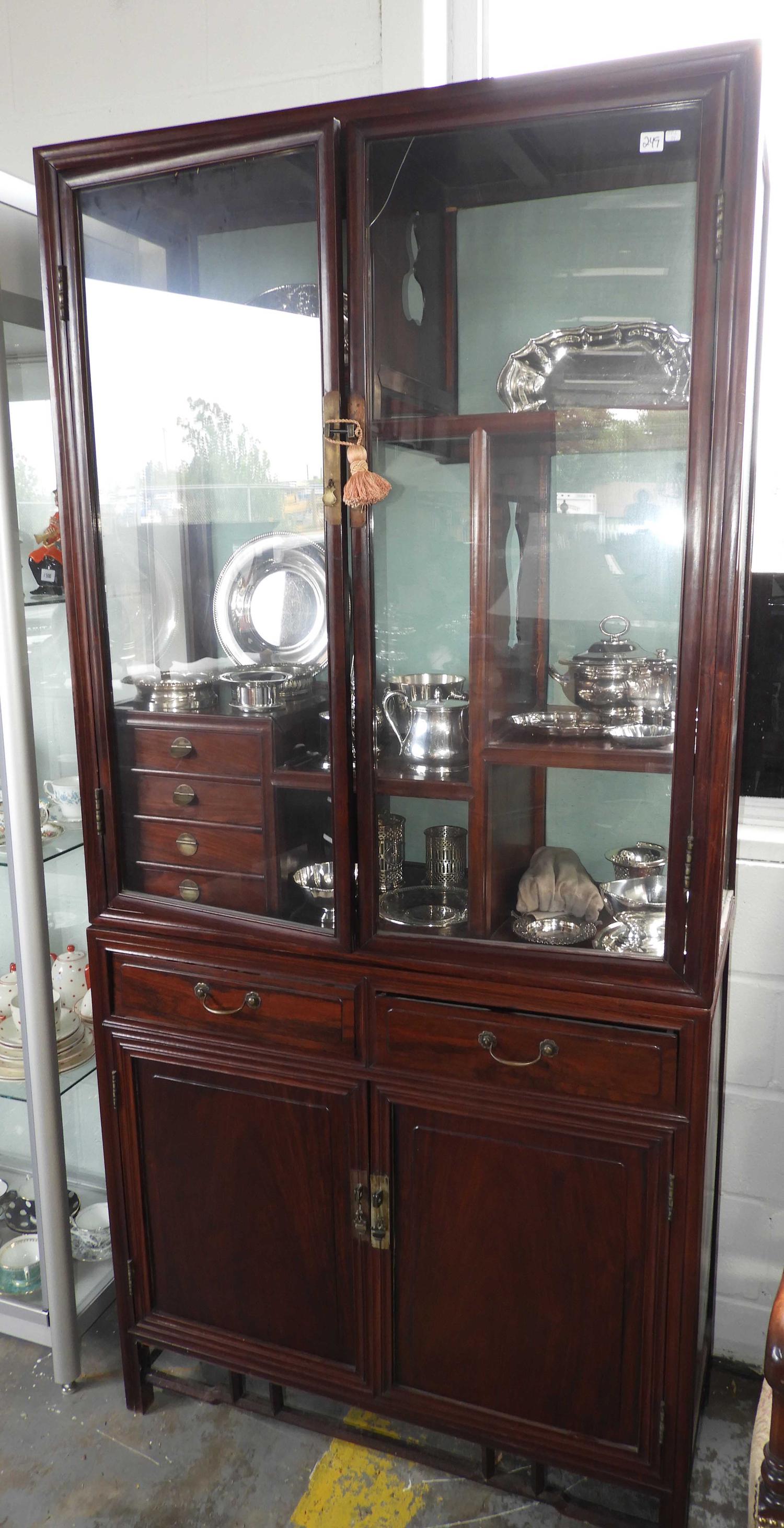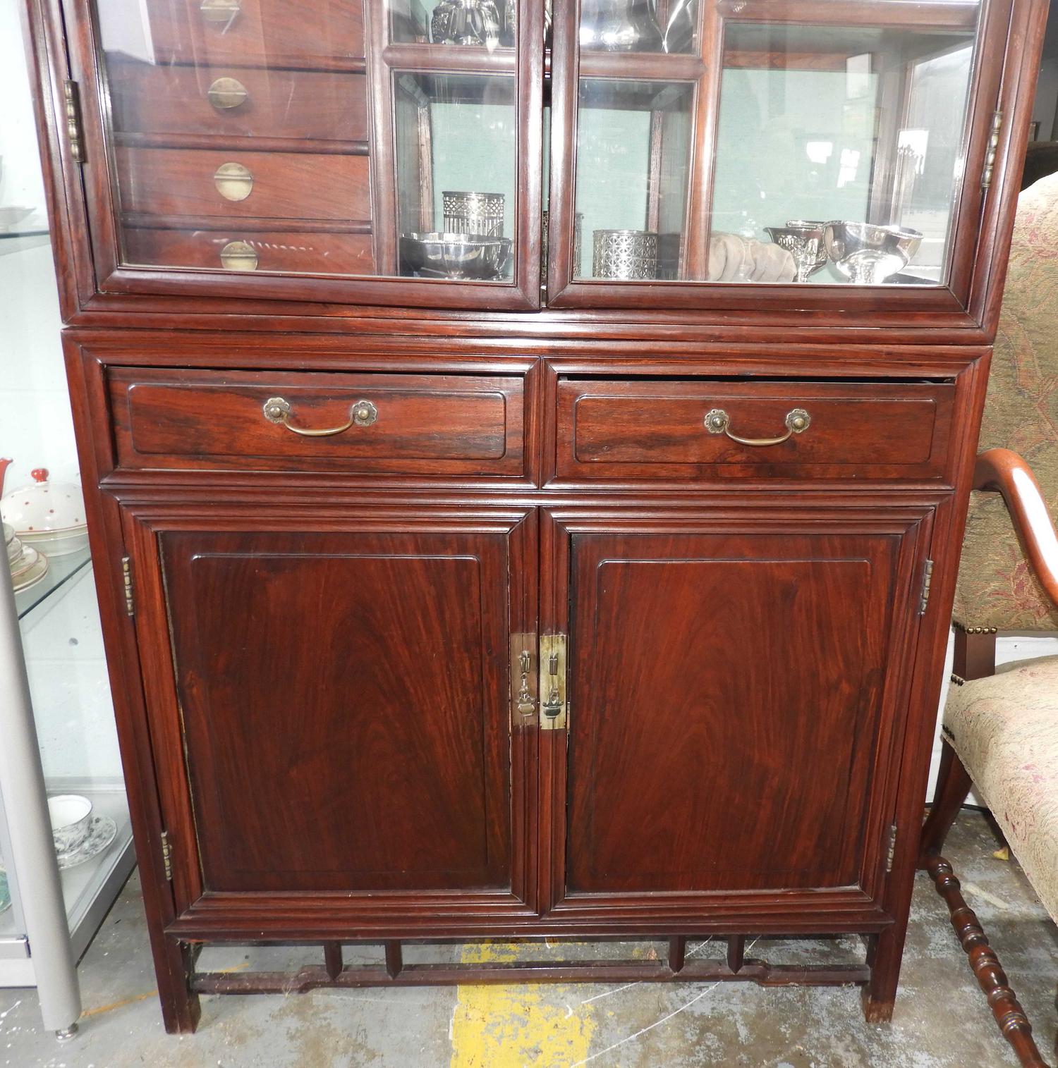 chinese two piece glazed hardwood display cabinet