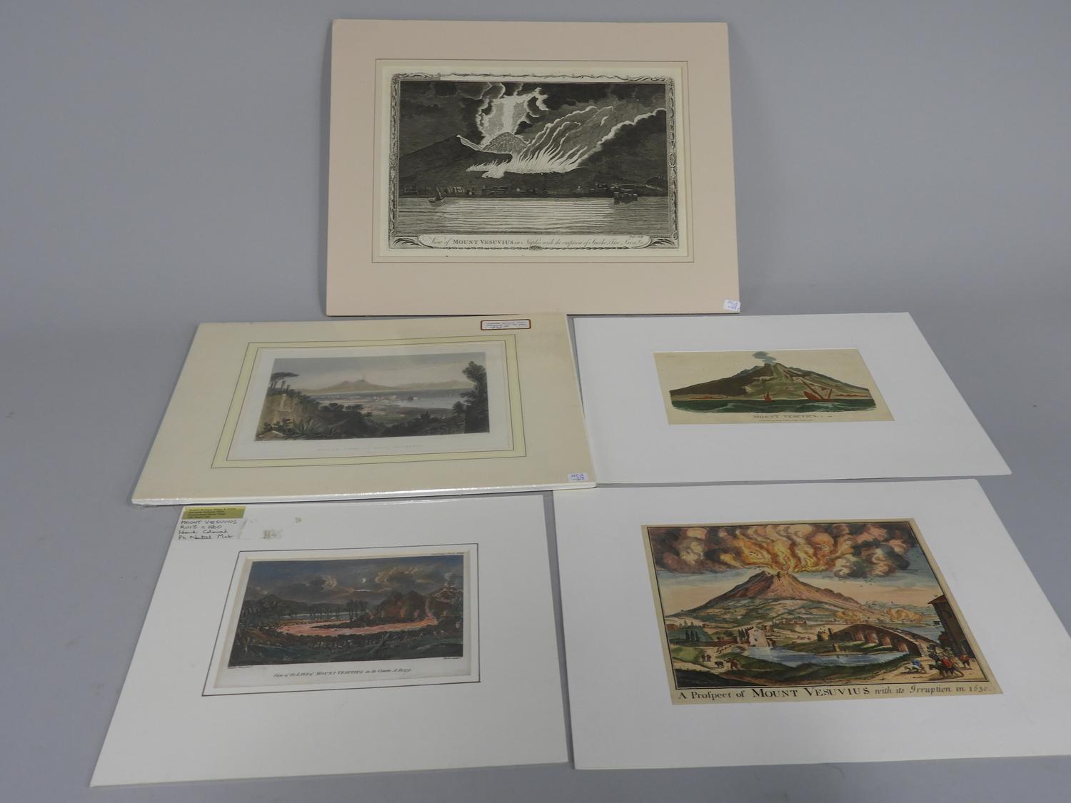 five unframed prints "mt vesuvious" & "naples" etc.