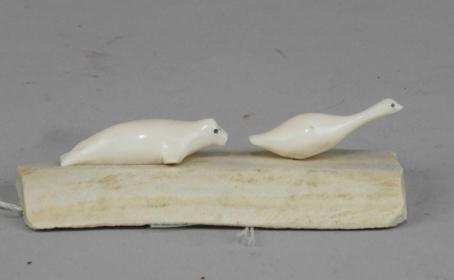 antler and ivory seal and goose on stand