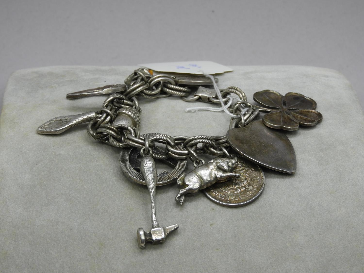 1950s coro signed charm bracelet "lucky charms"