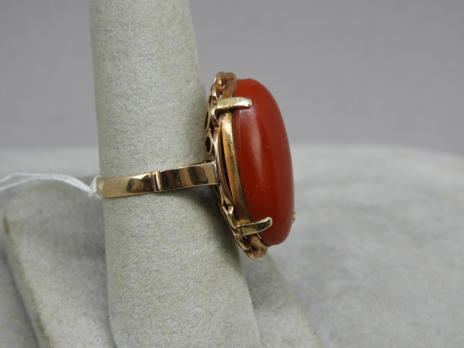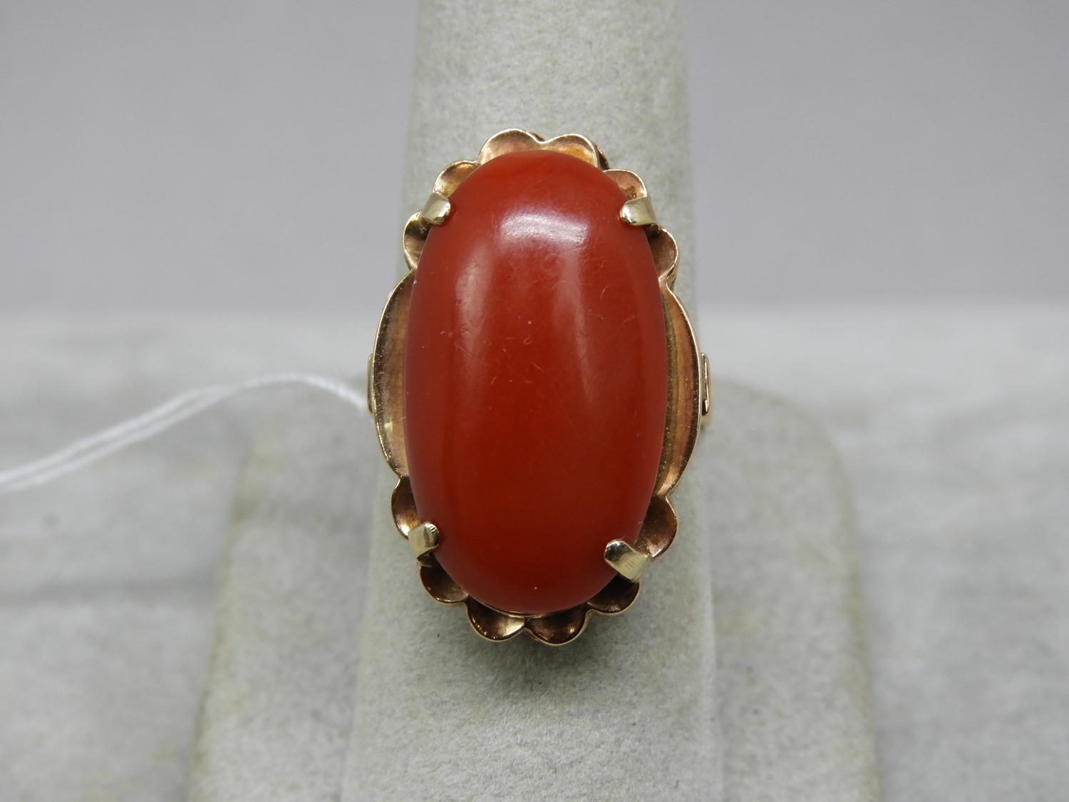 18k pink gold coral ring, 1930's