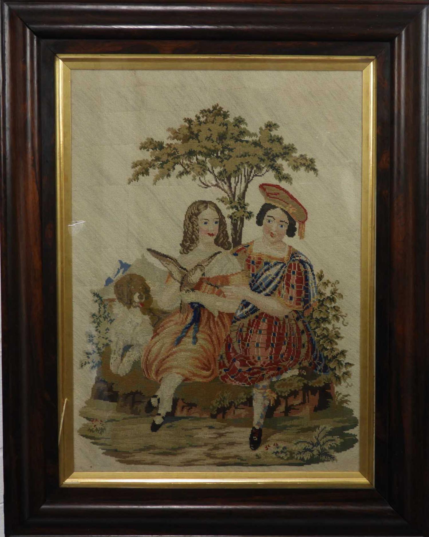 19th century rosewood framed needle work picture