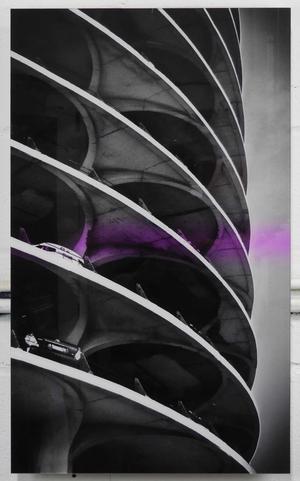 r.trider, dated 2012, mixed media, 30" x 24", "waiting" and another print