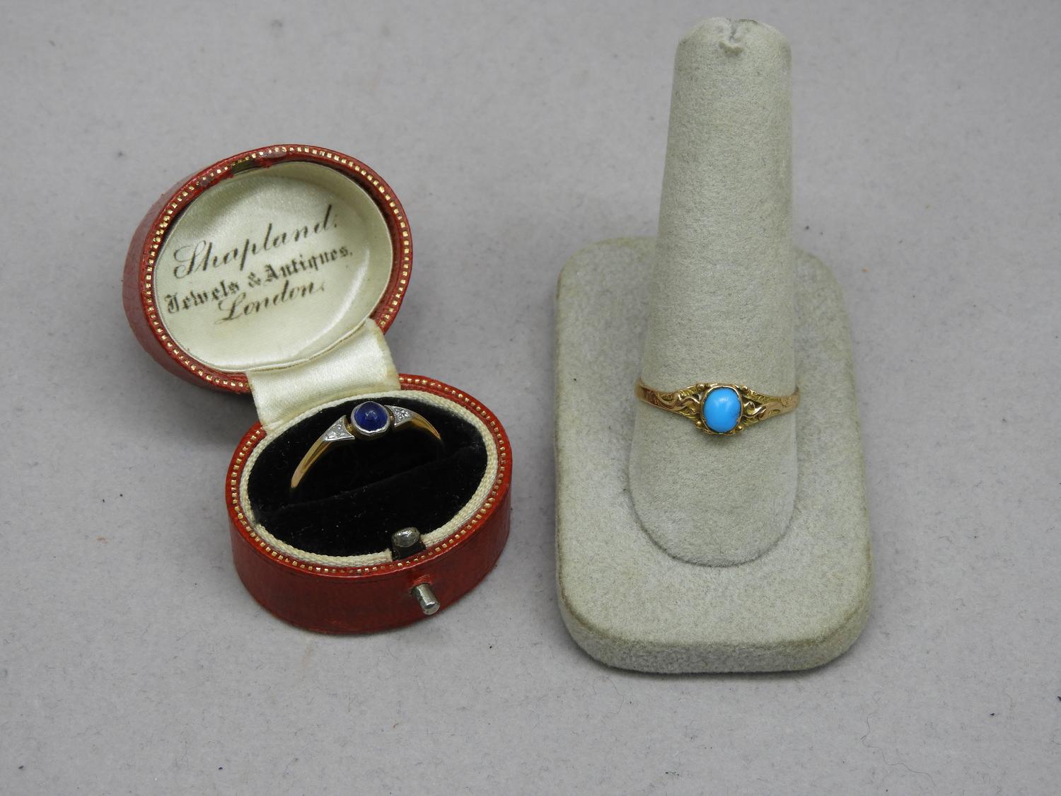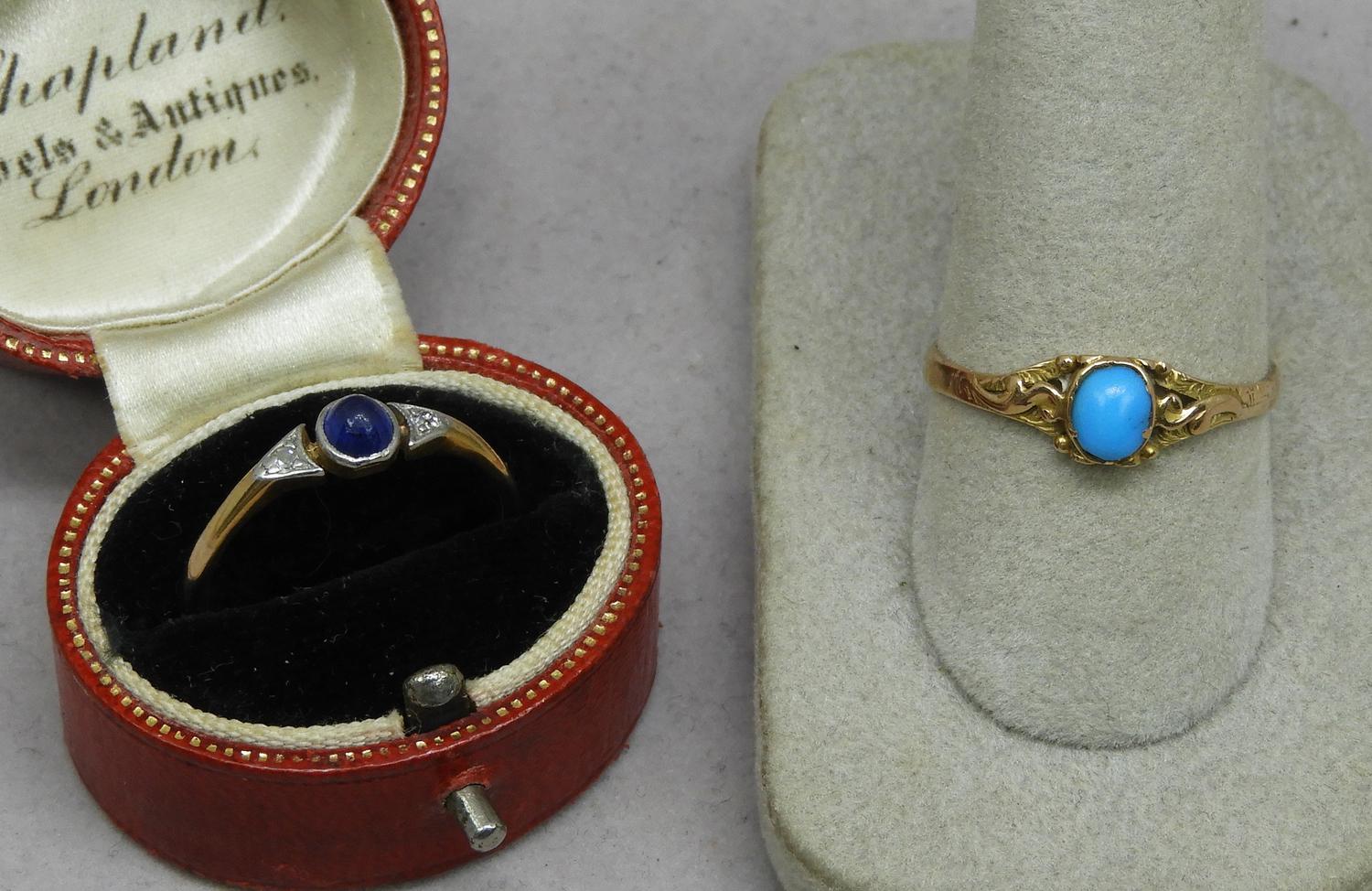 antique sapphire diamond ring in original box with a 9k turquoise ring