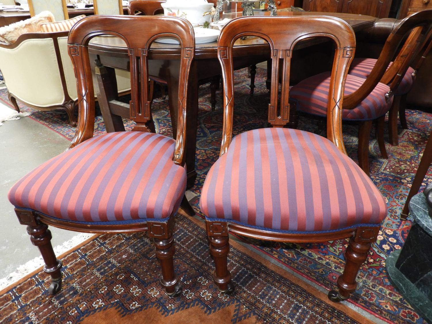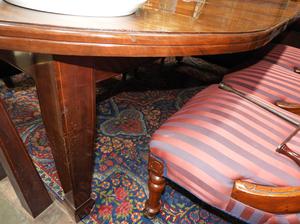 19th century inlaid mahogany key wind dining table with 6 chairs