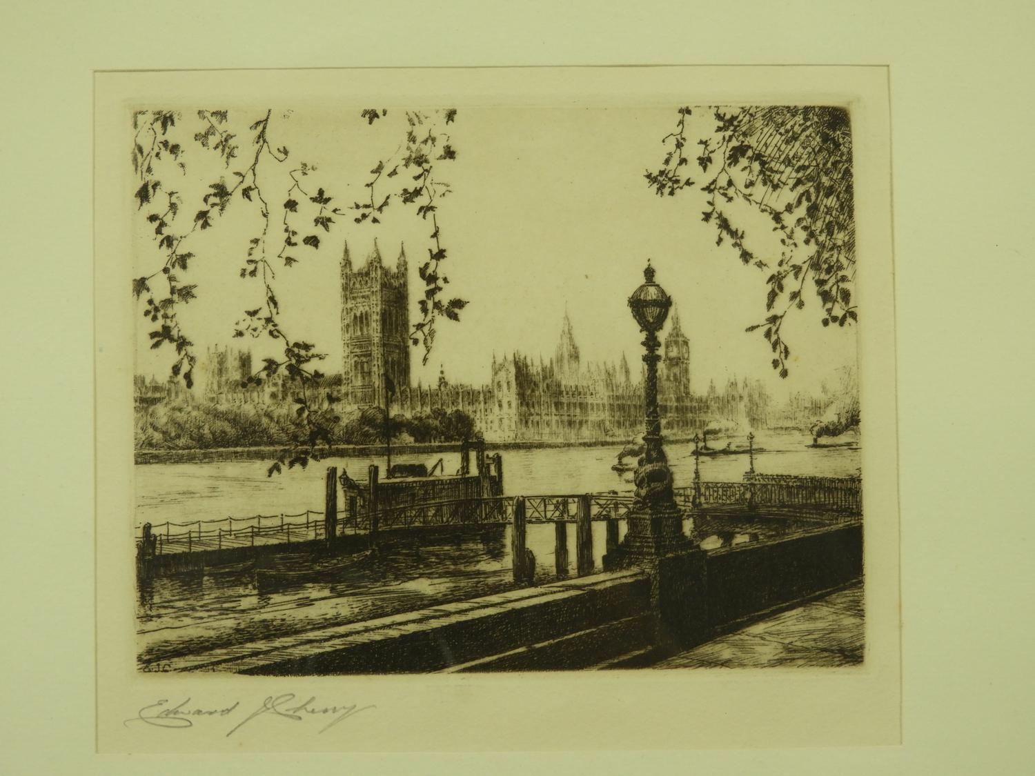 edward j. cherry, etching 5" x 6", "houses of parliament, london"