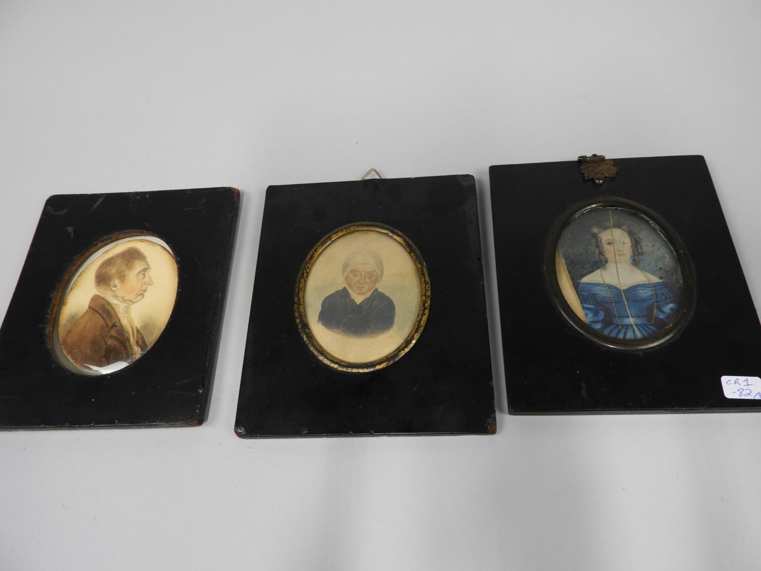 three antique portrait miniatures