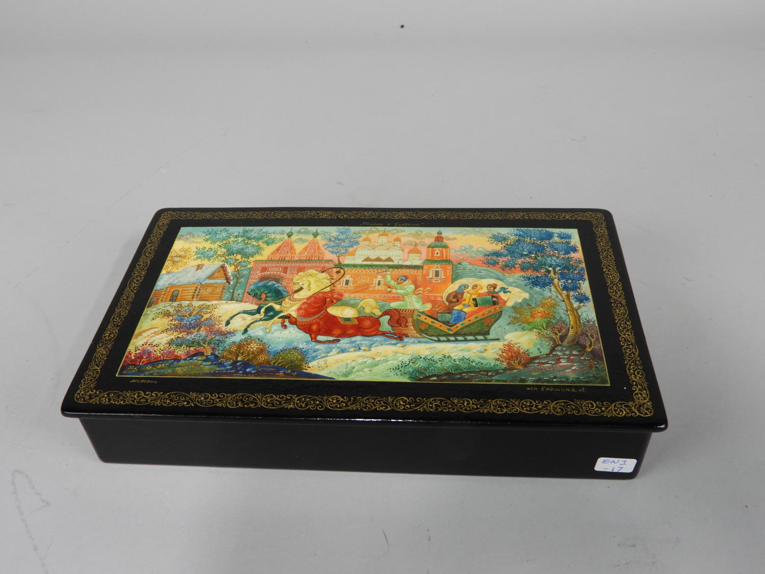 russian lacquered dresser box, 9 1/2" x 5 1/2"