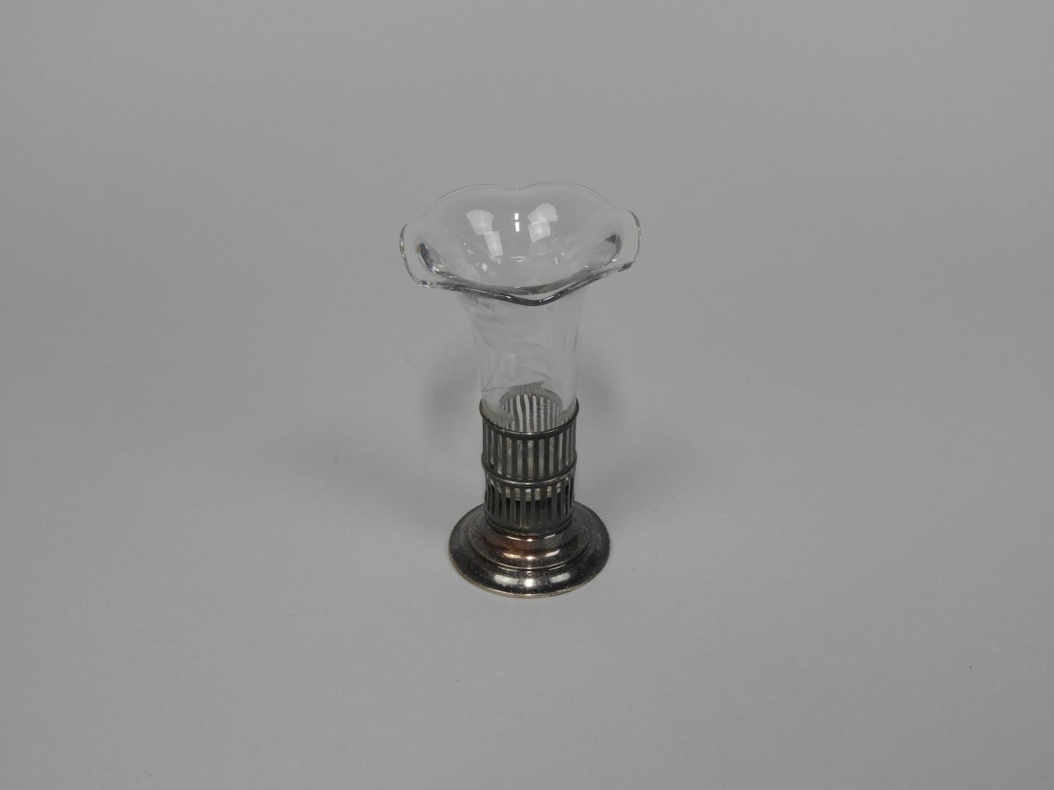 small etched glass vase with sterling silver base